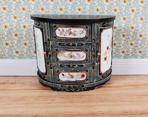 Jbm Dollhouse Cabinet Half Round Hand Painted Black Gold Etsy Canada